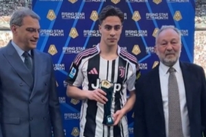 4场2球2助攻!伊尔迪兹在赛前领取意甲3月最佳年轻球员奖杯