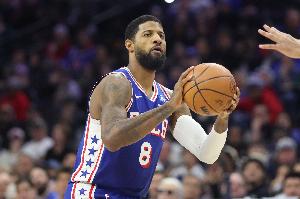 此役,乔治出场36分钟19投9中,三分11中4、罚球5中4拿到26分13篮板2助攻4抢断1盖帽,正负值-5。