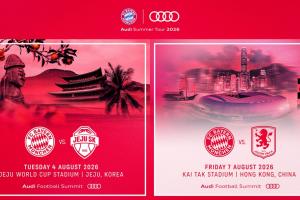 拜仁慕尼黑第十届奥迪夏季行将于今年8月1日至8日再度登陆亚洲,球队将先后前往韩国济州岛与中国香港。本次奥迪夏季行将举办两场奥迪足球峰会:孔帕尼率领的球队于8月4日在济州对阵济州SK,8月7日转战启德体育场迎战英超阿斯顿维拉。