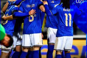 体育资讯3月27日讯 欧青赛预选赛,意大利U21以4-0的比分大胜北马其顿,暂时和波兰并列E组榜首。